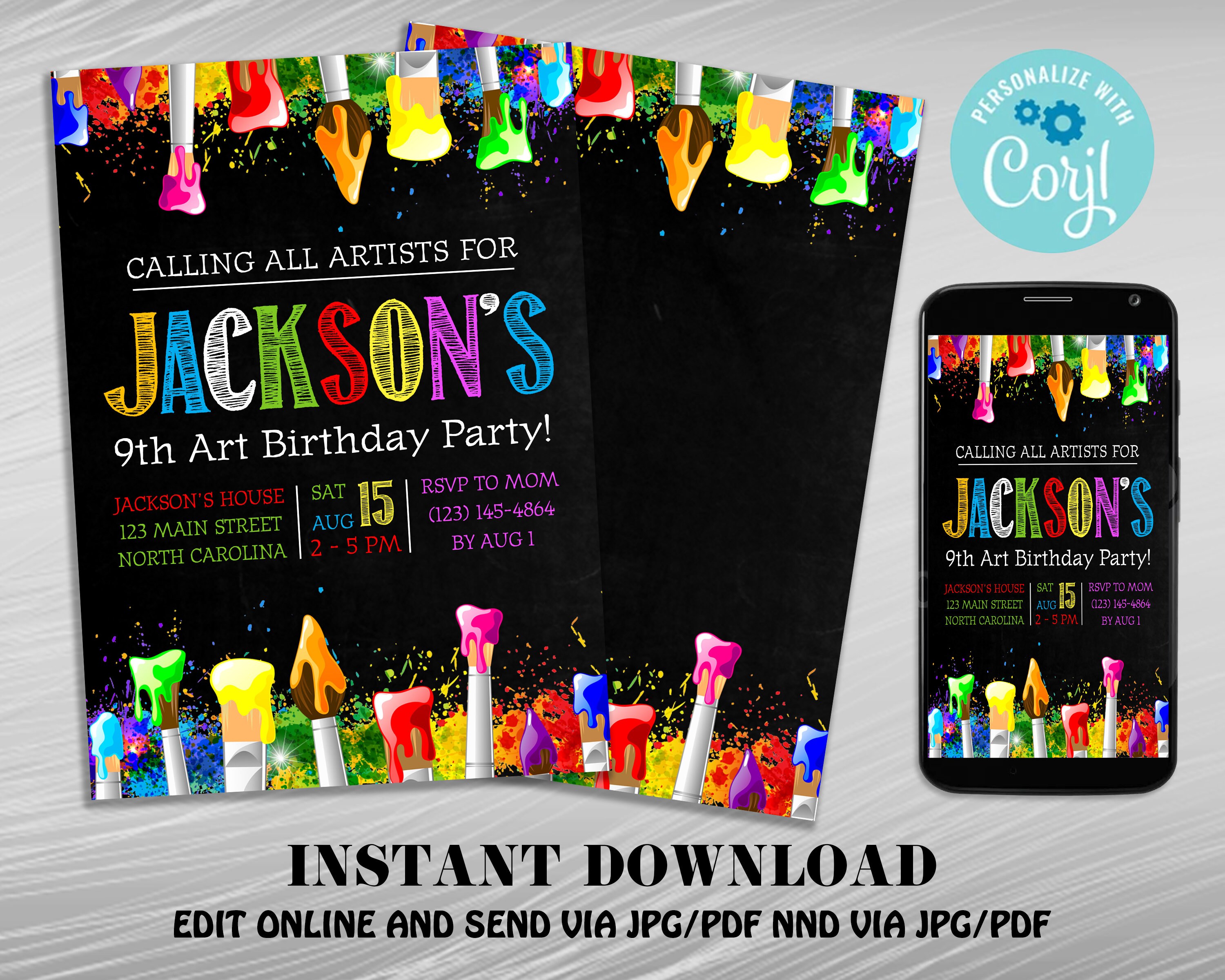 Art Party Invitation Rainbow Art Party Unisex Art Party Etsy Art Party Invitations Art Birthday Party Art Party Favors